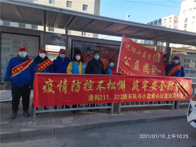 1月10日上午10時(shí),沈陽小藍(lán)爰心公益團(tuán)隊(duì)隊(duì)員來到通利公司211、222路大北門車隊(duì),冒著嚴(yán)寒送來了抗疫物資300個(gè)口罩和兩箱消毒液,并和車隊(duì)共同開展了“疫情防控不松懈筑牢安全防護(hù)墻”主題宣傳活動(dòng),使廣大駕駛員感受到在抗擊疫情斗爭中,社會(huì)爰心團(tuán)隊(duì)對(duì)公交車隊(duì)的支持與關(guān)愛。