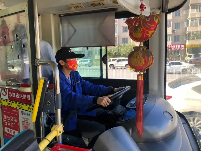 針對這次多點(diǎn)位運(yùn)送游客任務(wù),通利公司抽調(diào)107路、212路、218路、219路、221路、258路等6條線路車輛29臺,駕駛員、管理人員共計(jì)40余人。節(jié)日期間,線路管理人員帶隊(duì)并擔(dān)負(fù)起導(dǎo)乘員的工作。他們根據(jù)實(shí)地客流情況,科學(xué)調(diào)配車輛,部分車輛將車廂里懸掛醒目鮮紅的國旗,駕駛員的防御口罩也從日常的白色或藍(lán)色變成了寫有“我愛你中國”字樣的中國紅口罩,以這種方式表達(dá)自己對祖國的熱愛敬仰之情。