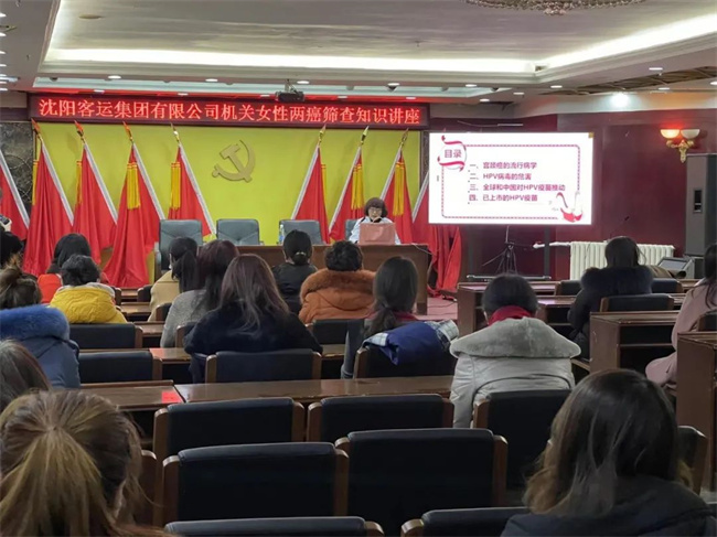 講座邀請沈陽鐵西疾控疫苗預(yù)防接種中心主任劉月主講。劉主任通過病例分析及圖片演示的形式向廣大女職工認(rèn)真普及了兩癌的相關(guān)健康知識及預(yù)防措施,呼吁女職工關(guān)愛自身健康,并對女職工提出的問題一一作了耐心的解答。