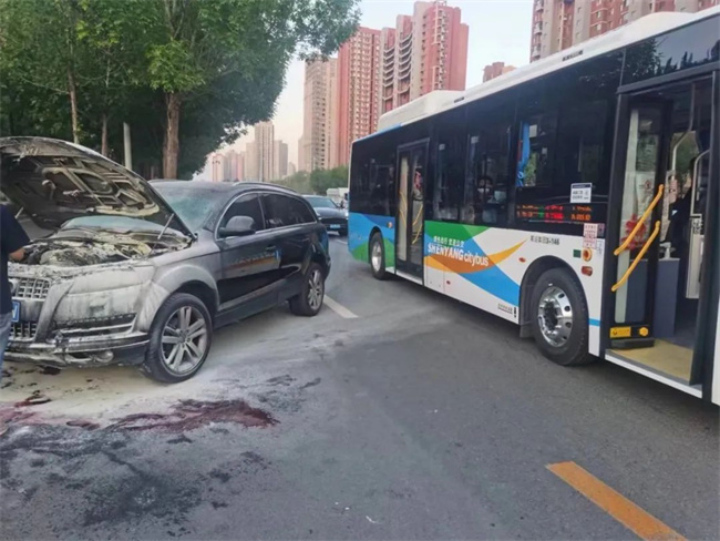 5月20日傍晚,沈陽客運集團沈蘇公司154路駕駛員劉健偉駕駛車輛經(jīng)過渾南伊麗雅特灣車站附近時,發(fā)現(xiàn)停在右側(cè)車道上一輛小轎車冒出陣陣濃煙。