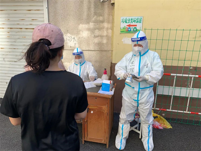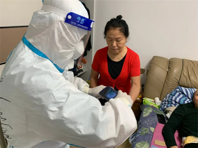 王眾介紹,轄區(qū)內(nèi)有一位外國友人身體不好,志愿者上門進(jìn)行核酸檢測(cè)時(shí),這位老外深受感動(dòng),一直在說“Thank you!”