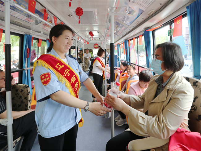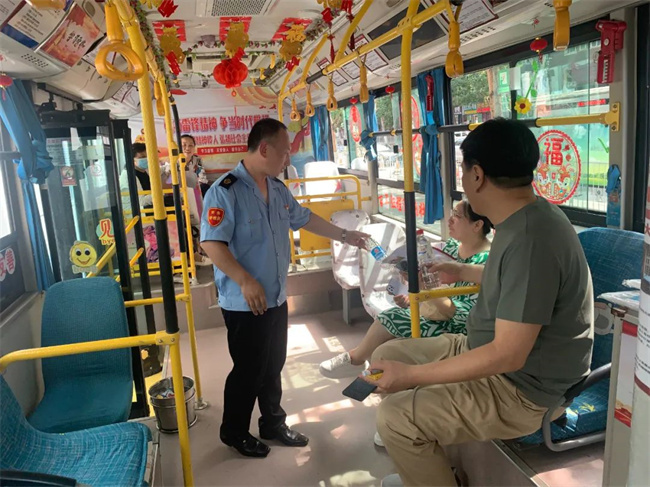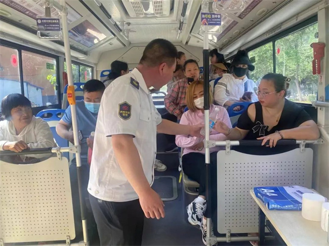 期間學(xué)生家長在公交車上休息,王樹祥為大家準(zhǔn)備了水、急救物資、乘涼用品等,家長們對車隊提供便利條件和溫馨的舉動表示感謝。