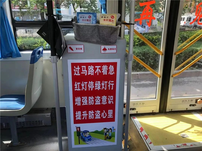 今年7月,胡影自己“裝扮”起了車廂,在業(yè)余時間購置了便民醫(yī)藥箱、一次性雨衣、手套、口罩、留言簿以及溫馨提示語。胡影說:“夏天的雨經(jīng)常猝不及防,很多人出門沒帶傘,車上備些防雨用具,可以方便乘客?!?/p>