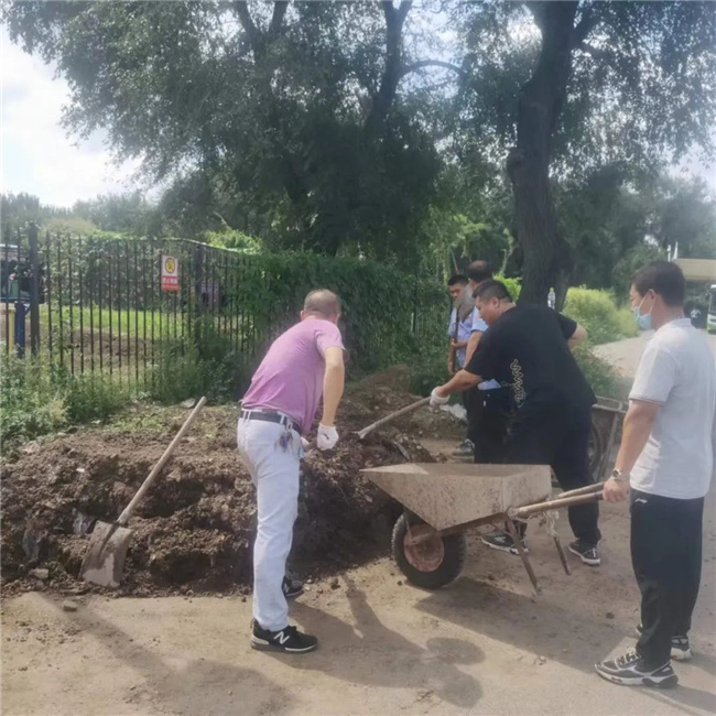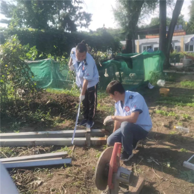 隨后,志愿者們開展清理雜草工作,消除了場區(qū)潛在的安全隱患。另外,大家利用車隊購買來的建筑材料,在場區(qū)里額外修砌出一條小路,并在小路兩旁種上各種鮮花,方便駕駛員在站務(wù)室和停車場之間穿行。