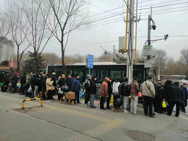 清明前夕,387路客量有所增加,金芳主動擔任起乘務員的職責,不斷提醒乘客小心慢上,扶好站穩(wěn)。在她耐心的疏導下,乘客們沒有出現(xiàn)浮躁焦慮、一擁而上的混亂場面,而是自覺排起了長長的隊伍,安全有序登上了這趟387路公交車。