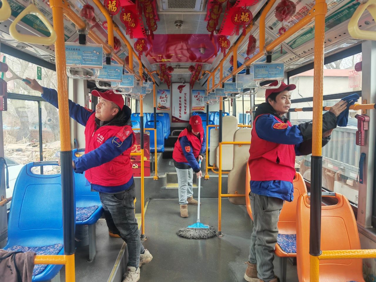 早春的寒風(fēng)依舊冷冽,活動(dòng)中,志愿者們不畏寒冷,身穿帶有志愿服務(wù)標(biāo)識(shí)的紅色馬甲,手拿清潔工具,對(duì)公交車(chē)輛、場(chǎng)站、候車(chē)?yán)鹊葓?chǎng)所進(jìn)行清掃,為乘客提供干凈舒適的出行環(huán)境。
