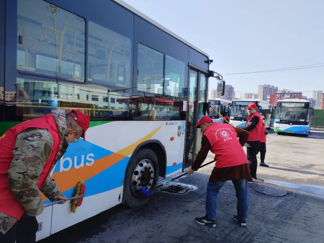 清潔環(huán)境,美化家園。部分黨支部組織黨員志愿者對(duì)公司所屬公交車(chē)輛、場(chǎng)站進(jìn)行徹底清潔。志愿者們手持掃帚、抹布等工具,認(rèn)真清掃車(chē)廂內(nèi)外,擦拭車(chē)窗座椅,清理場(chǎng)站垃圾,為乘客營(yíng)造干凈整潔的乘車(chē)環(huán)境。他們不怕臟、不怕累,用實(shí)際行動(dòng)詮釋了“奉獻(xiàn)、友愛(ài)、互助、進(jìn)步”的志愿精神。