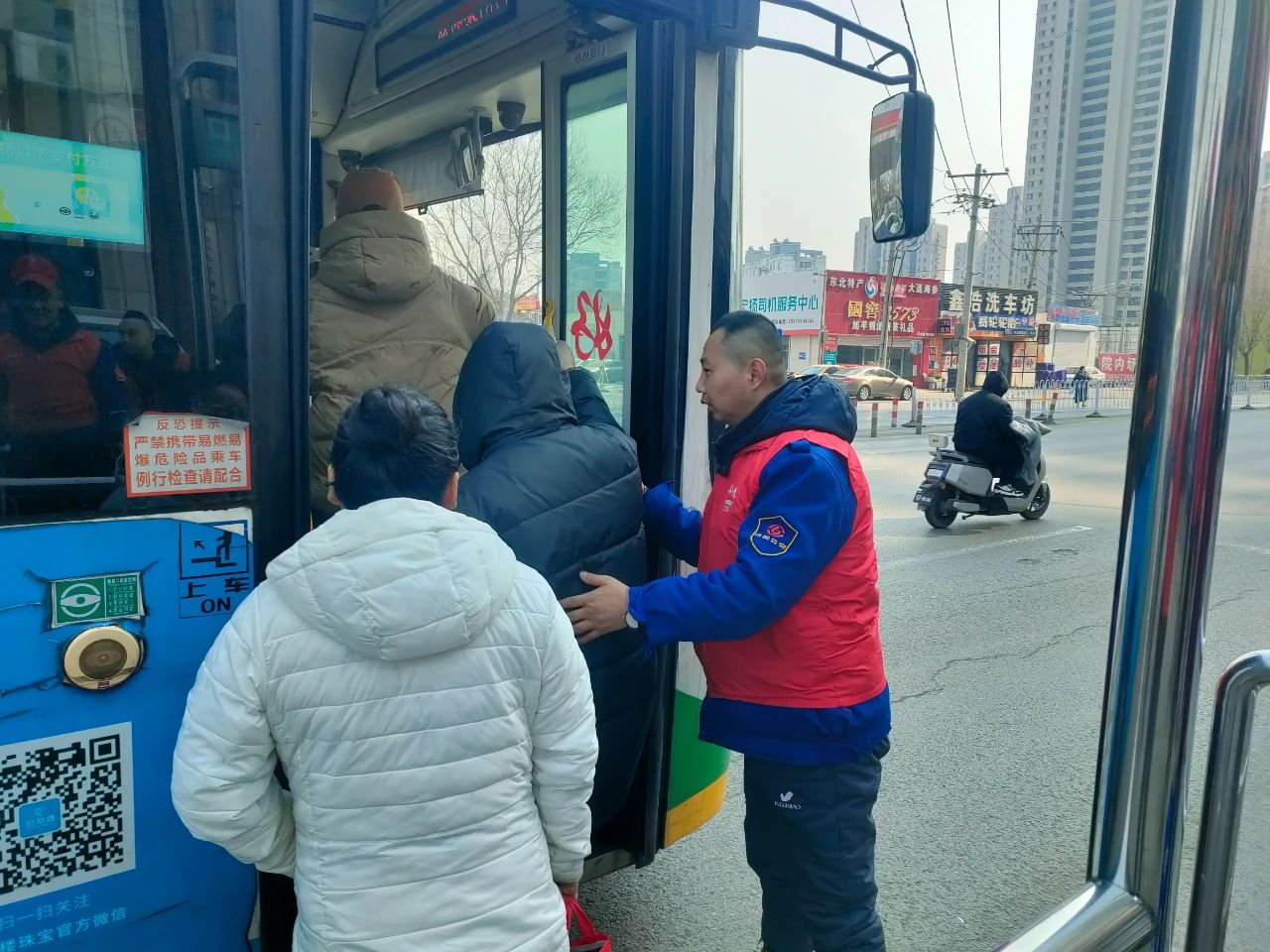 身披紅色綬帶的志愿者們熱情滿(mǎn)滿(mǎn),為乘客提供咨詢(xún)引導(dǎo)服務(wù),耐心解答各類(lèi)出行疑問(wèn),幫助公交站點(diǎn)進(jìn)行環(huán)境升級(jí)。