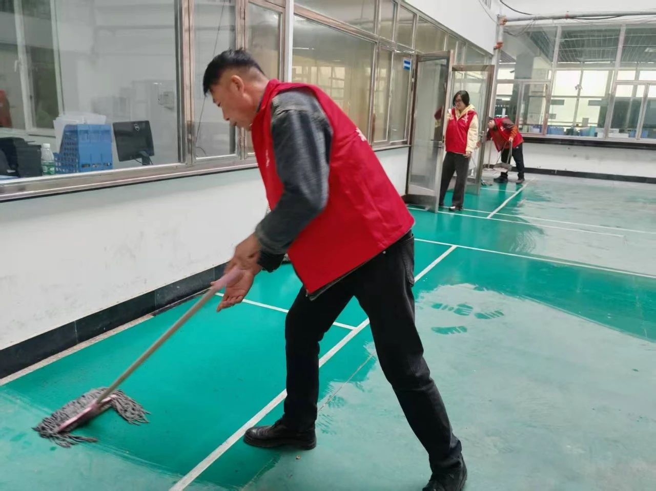 活動當日,黨員同志們身著紅馬甲,手持掃帚、抹布、拖布等工具,分組對駕校報名大廳、理論教室、模擬訓(xùn)練室、候考區(qū)及戶外訓(xùn)練場等區(qū)域展開全方位清潔。