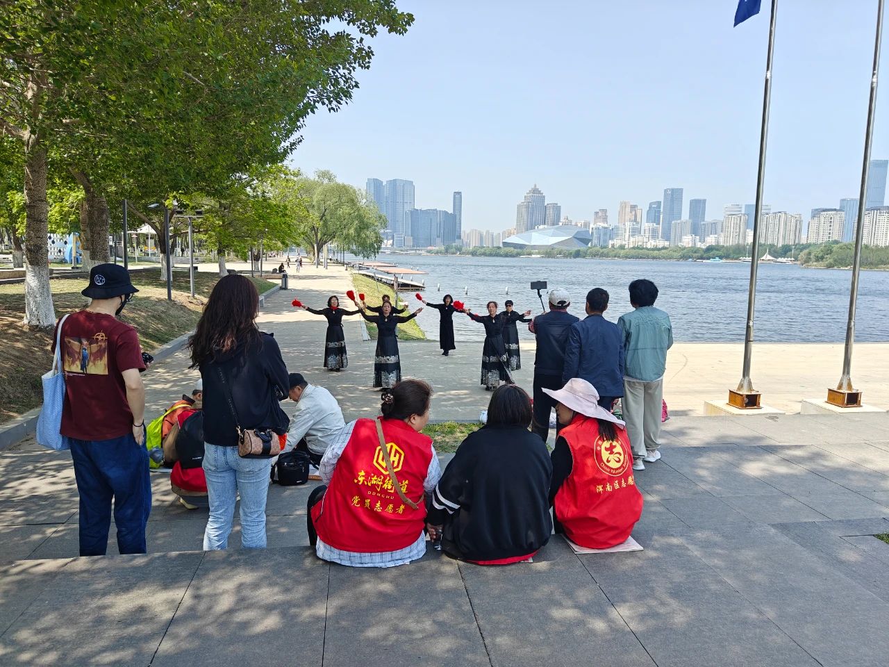 當(dāng)天清晨9點(diǎn),載滿歡聲笑語(yǔ)的公交車準(zhǔn)時(shí)出發(fā)。在奧林匹克公園河畔,老人們漫步林蔭道,賞花觀景、拍照留念,社區(qū)老年模特隊(duì)身著馬面裙,手拿紅色折扇在湖邊翩翩起舞驚艷全場(chǎng),翩躚身影與粼粼波光相映成趣。返程途中,車廂化身為"流動(dòng)文化站",黨員志愿者帶領(lǐng)老人們開(kāi)展紅歌聯(lián)唱,《我和我的祖國(guó)》《沒(méi)有共產(chǎn)黨就沒(méi)有新中國(guó)》的旋律此起彼伏,溫情涌動(dòng)間拉近了黨群距離。