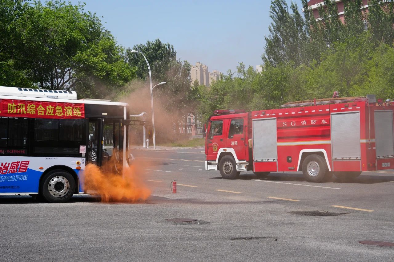 演練模擬了公交運(yùn)營(yíng)中多種突發(fā)場(chǎng)景,包括車輛火災(zāi)撲救、乘客攜帶危險(xiǎn)品處置、積水路段熄火應(yīng)對(duì)以及車輛遇險(xiǎn)(進(jìn)水、被困)時(shí)緊急停車、使用滅火器/安全錘破窗、疏散逃生等。