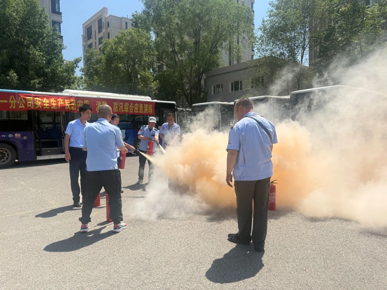 為提升職工消防反恐安保意識(shí)和應(yīng)急處置能力,一分公司于6月6日組織開展了安全生產(chǎn)、反恐安保、消防及防汛綜合應(yīng)急演練。市公交軌道分局王兆民處長(zhǎng)、公司負(fù)責(zé)人、相關(guān)部門負(fù)責(zé)人及駕駛員代表參加。