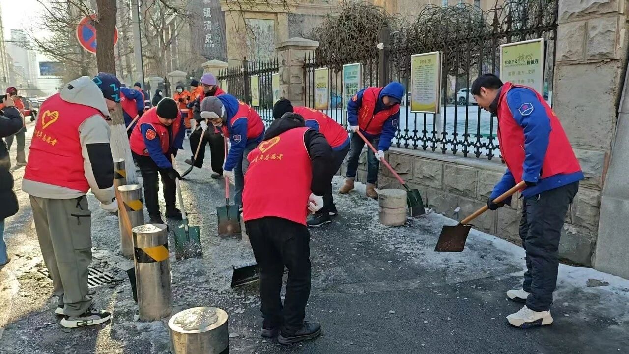活動當天,黨員志愿者們身著紅色馬甲,準時集結(jié),參與淮北社區(qū)組織的清冰除雪志愿服務(wù)活動。針對虹橋中學校門口人行橫道積雪結(jié)冰、易滑難行的問題,志愿者們重點對該區(qū)域展開集中清理。大家手持鐵鍬、雪鏟、掃帚等工具,分工協(xié)作、齊心協(xié)力,將路面積雪與薄冰徹底鏟除清運。經(jīng)過一番努力,校門口人行橫道恢復干凈通暢,通行條件顯著改善,為師生的安全出行提供了堅實保障。