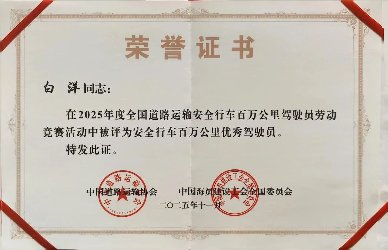 會(huì)上,沈陽(yáng)客運(yùn)集團(tuán)黃河公司青城山路車(chē)隊(duì)190路三星級(jí)駕駛員白洋同志獲得的榮譽(yù)表彰成為全場(chǎng)矚目的亮點(diǎn)——在2025年度全國(guó)道路運(yùn)輸安全行車(chē)百萬(wàn)公里駕駛員勞動(dòng)競(jìng)賽活動(dòng)中,白洋獲評(píng)“安全行車(chē)百萬(wàn)公里優(yōu)秀駕駛員”,交通運(yùn)輸部科學(xué)研究院首席研究員、學(xué)術(shù)委員會(huì)常務(wù)副主任李忠奎親自為他頒發(fā)獲獎(jiǎng)證書(shū)。這份殊榮在遼寧省僅有兩人獲得,為沈陽(yáng)客運(yùn)集團(tuán)贏(yíng)得了榮光。