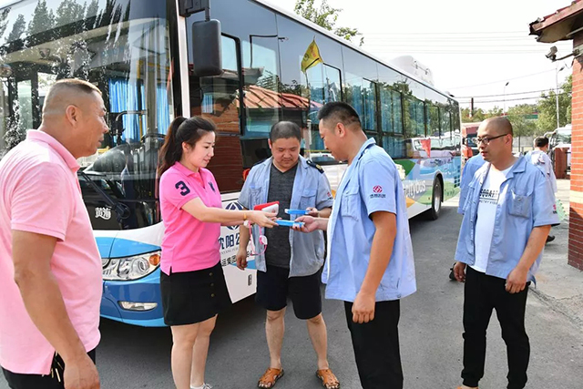 今年,我們又迎來了今年的高溫季節(jié),為做好防暑降溫工作,確保一線職工平安度夏,集團(tuán)機(jī)關(guān)開展了“送清涼”活動,集團(tuán)公司領(lǐng)導(dǎo)班子、集團(tuán)公司機(jī)關(guān)各部室負(fù)責(zé)人都積極的參與到了本次活動中,為奮戰(zhàn)在一線的駕駛員和職工送去了絲絲涼意,獻(xiàn)上了一份誠摯的關(guān)懷。