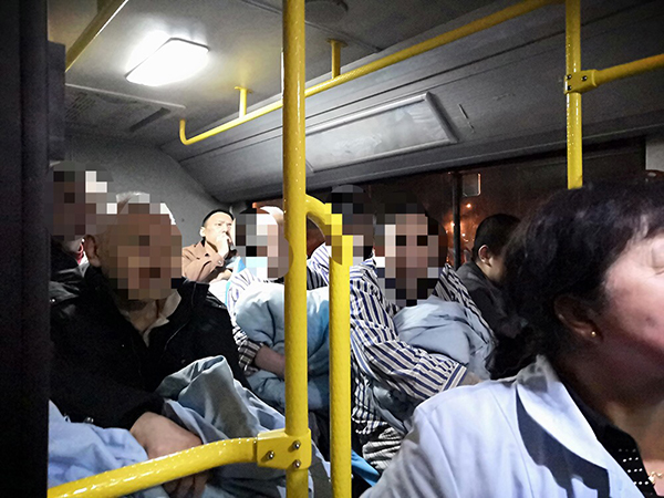在預(yù)備車輛前往集結(jié)地點(diǎn)的途中,鑫暢公司384路車隊(duì)徐躍接到了位于線路附近沈陽靜安國際心理康復(fù)中心的求助電話,那里有醫(yī)患人員近160余人需要緊急撤離。集團(tuán)公司臨時指揮部立即下達(dá)384路車隊(duì)就地組織執(zhí)行疏散命令。384路車隊(duì)根據(jù)現(xiàn)場情況,留下五輛車執(zhí)行撤離輸送任務(wù),另外兩輛車前往集結(jié)點(diǎn)待命。